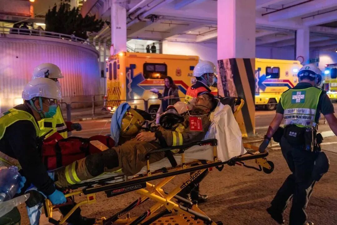 截至26日傍晚,香港消防处已出动128辆消防车、57辆救护车,总计767名消防救护人员参与救援。