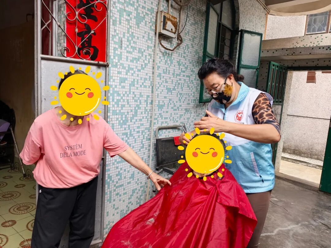 “王叔,我们来给您剪头发啦,您看想剪个什么样的?”“双百”社工亲切的问候,瞬间驱散了屋内的陌生感。志愿者迅速拿出精心准备的工具,仔细做好清洁消毒后,依老人的需求耐心修剪头发,还不时轻声交流询问感受。社工则贴心陪伴在旁,与老人唠起家常,了解生活近况与实际困难。理发过程中,志愿者手法娴熟、细致周到,剪完还细心清理碎发,力求每一个环节都让老人舒适满意。